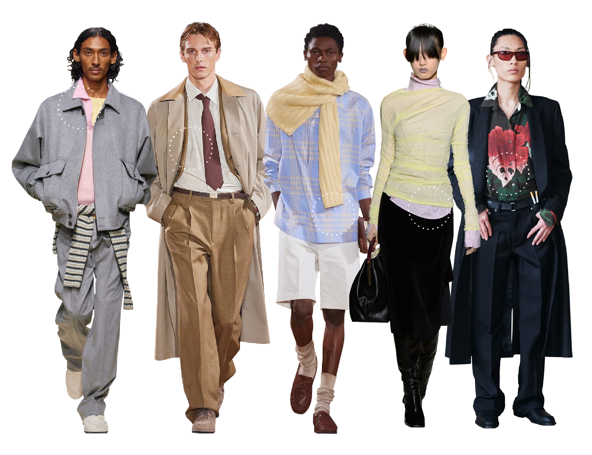 ⓸ 규칙적인 체크가 미니멀하면서도 시선을 자연스럽게 끌어, 베이직 룩에 섬세한 포인트를 더해 줘요. 얇은 니트나 시스루 톱과 레이어드하면 최근 부상한 ‘소프트 유틸리티’ 트렌드를 감각적으로 풀어낼 수 있죠. (이미지 ©DRIES VAN NOTEN)