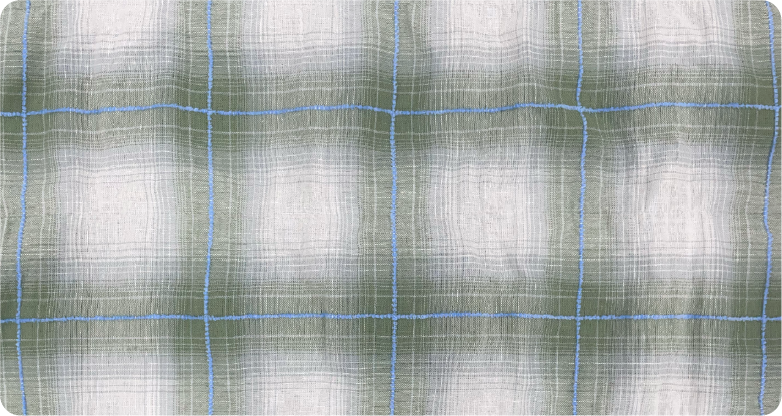 ⓷ 선이 굵고 큼직한 체크 패턴이 또렷하게 드러나 경쾌하고 개방적인 분위기를 자아내요. 연한 블루 바탕에 밝은색 패턴이 어우러져 과하지 않고 부드럽게 조화를 이루는 것이 특징이에요. (이미지 ©AURALEE)